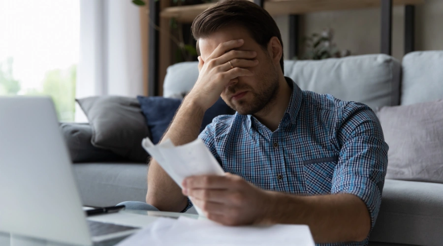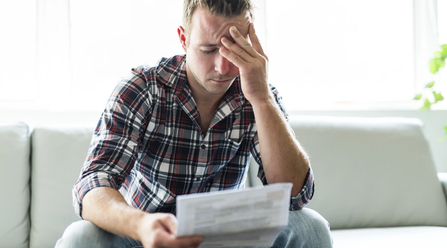 Image of a man holding his hand on his forehead, reviewing his failed drug test results